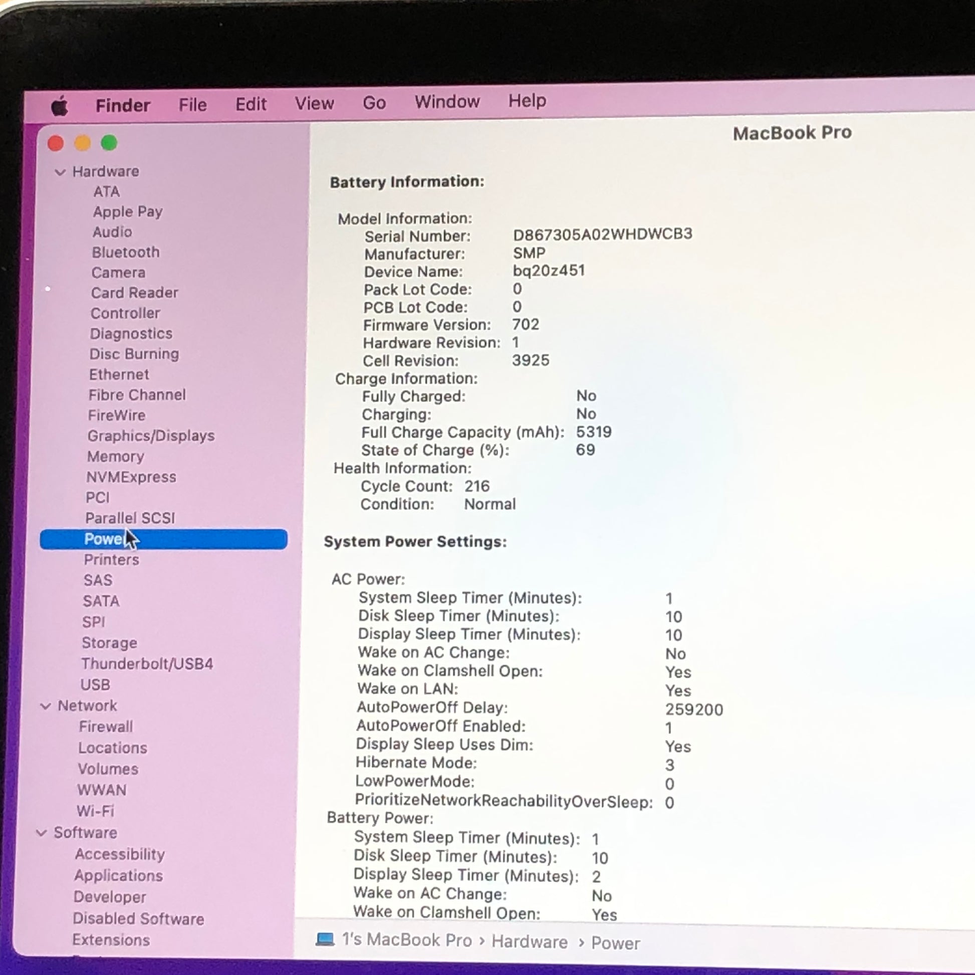 | Serial# | C02V568DHTD5 |