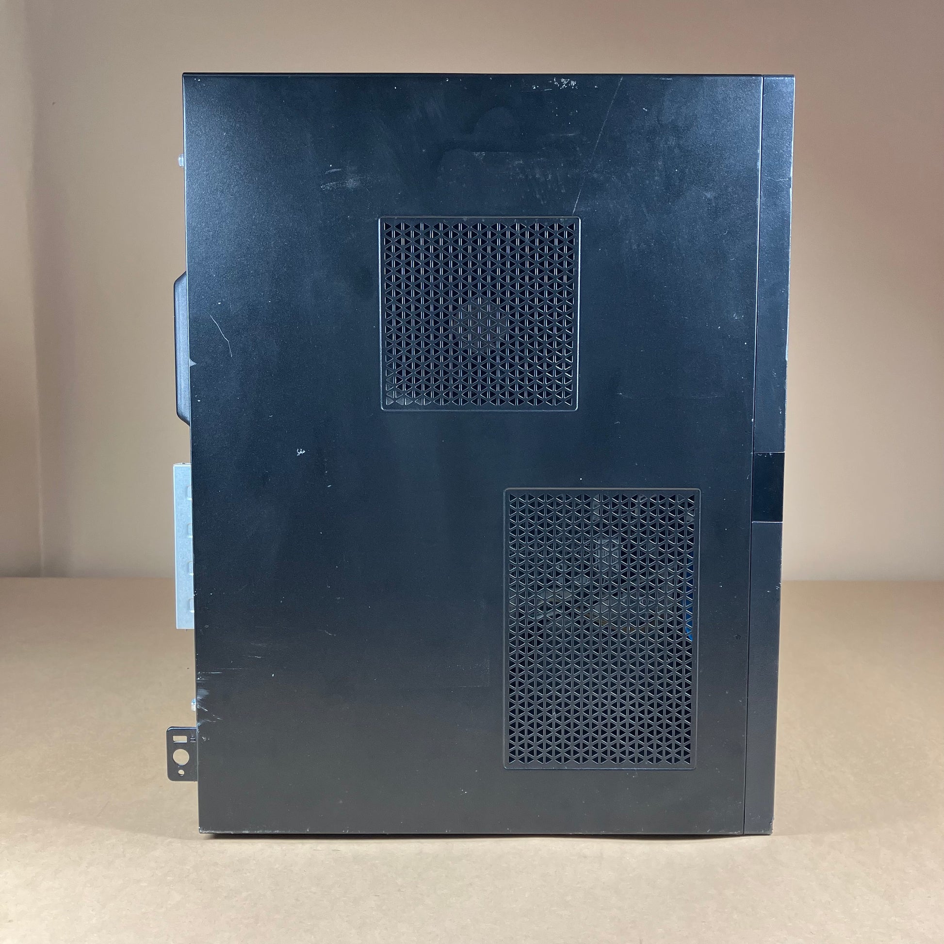 The case is in good cosmetic condition with minimal wear. All four sides are in good cosmetic condition with minimal wear. The glass is in good condition with some minor wear and scuffs. The keyboard and mouse are in good condition with some minor wear and signs of use. All of the ports are in good condition and clean.
