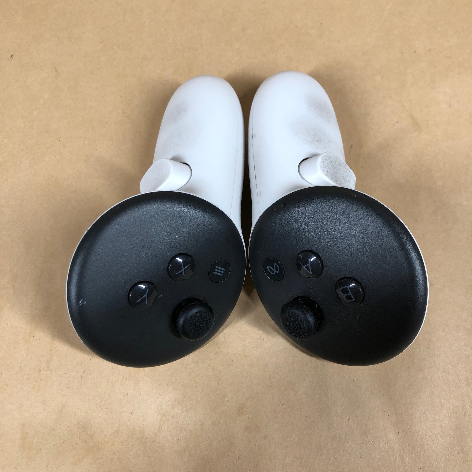 This product has been well-maintained and shows signs of light to moderate use. Both the left and right screens display minor, noticeable marks. The casing maintains a good cosmetic appearance but features some light scuffs and scratches. All ports are clean and fully functional. The headband is in good shape, though it does show slight to moderate wear including possible small stains and noticeable scuffs. The controllers are similarly in good condition with some minor visible wear. Please note, the facial interface exhibits more significant wear with moderate to heavy signs of use, including noticeable cracking and scuffs. We encourage you to review the close-up photos provided to get a detailed look at the item you are considering.