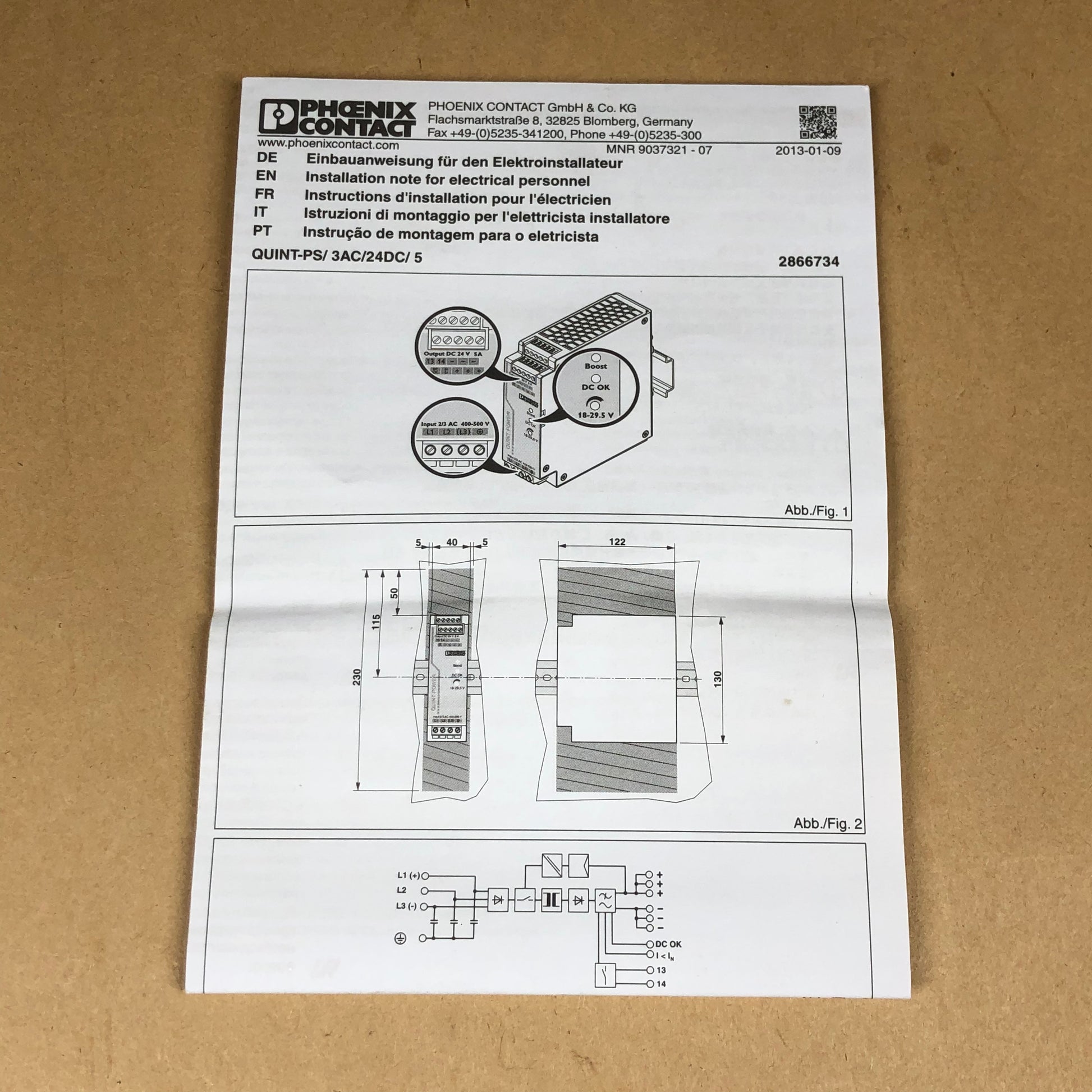 New Pheonix Contact PS/3AC/24DC/5 2866734 Primary Switched Quint Power Supply